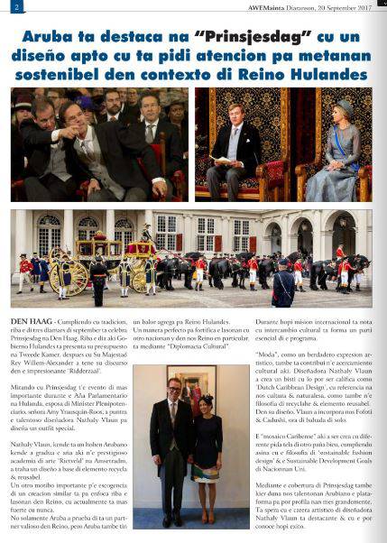 Dutch Caribbean Design article on Aruban newspaper Awe Mainta, 20 September 2017